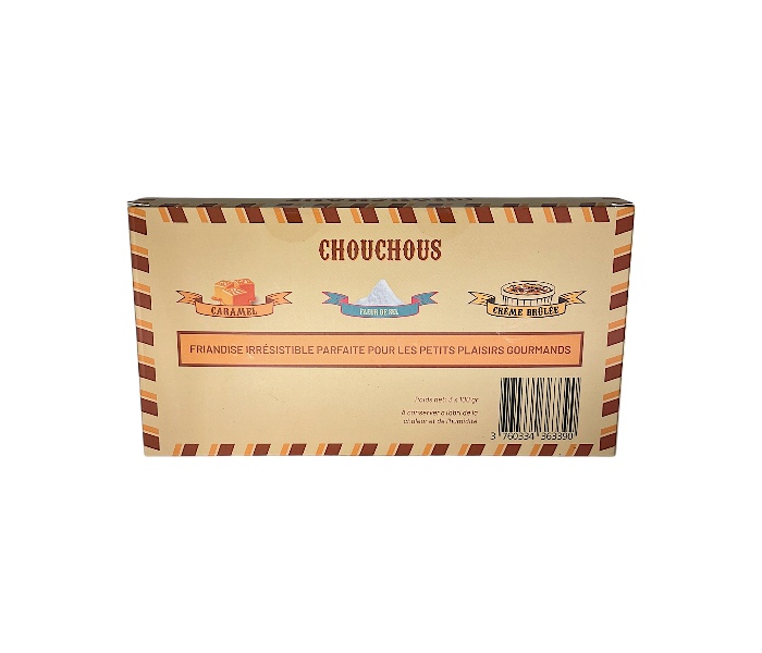 Découvrez un coffret irrésistible de chouchous croustillants déclinés en trois saveurs gourmandes : caramel, fleur de sel de l’Île de Ré et crème brûlée. Élaborées à partir d’arachides soigneusement caramélisées, ces douceurs offrent un parfait équilibre entre croquant et fondant.