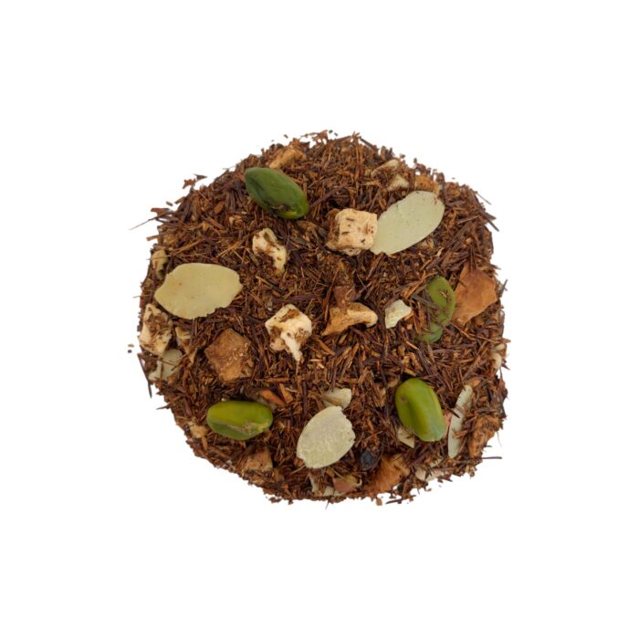 Rooibos d’Afrique agrémenté de la douceur d’un bouquet de fruits secs. Très parfumé, rond et savoureux.