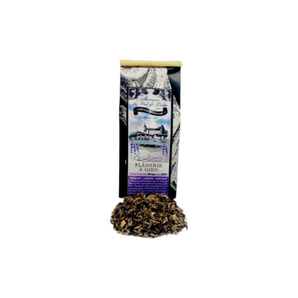 Ce thé gourmand rend hommage à la lavande Bleu de Gien, développée tout récemment près de Gien. Cette nouvelle variété de lavande officinale s’illustre par sa floraison estivale et sa couleur caractéristique des épis, très lumineuse, intermédiaire entre le bleu et le violet vif.